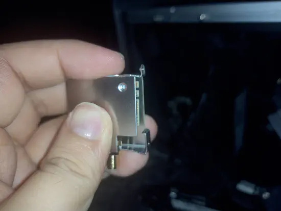 You can see how the contacts align flush against the edge of the case but the two screw holes at the top and bottom are not in alignment. The bottom screw hole is jutting out further than the top, which makes it so it won’t sit on the motherboard properly.