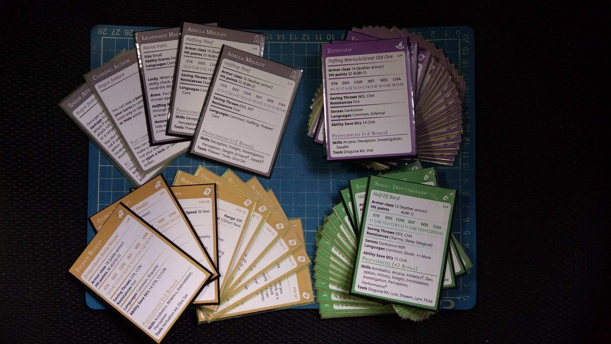 I used this card generator to generate the PDFs, which was the hardest part because you need to manually input the content (Wizards of the Coast cracks down hard on illegitimately distributed reproductions of their D&D IP).
