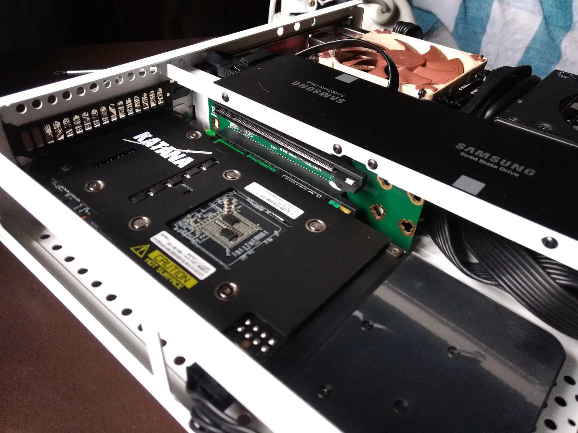 So, it’s relatively easy to modify the Sentry to use a PCIe bifurcation riser. I’m using an Ameri-Rack ARC1-PELY423-C5V3 which I paid $58 for all-in.