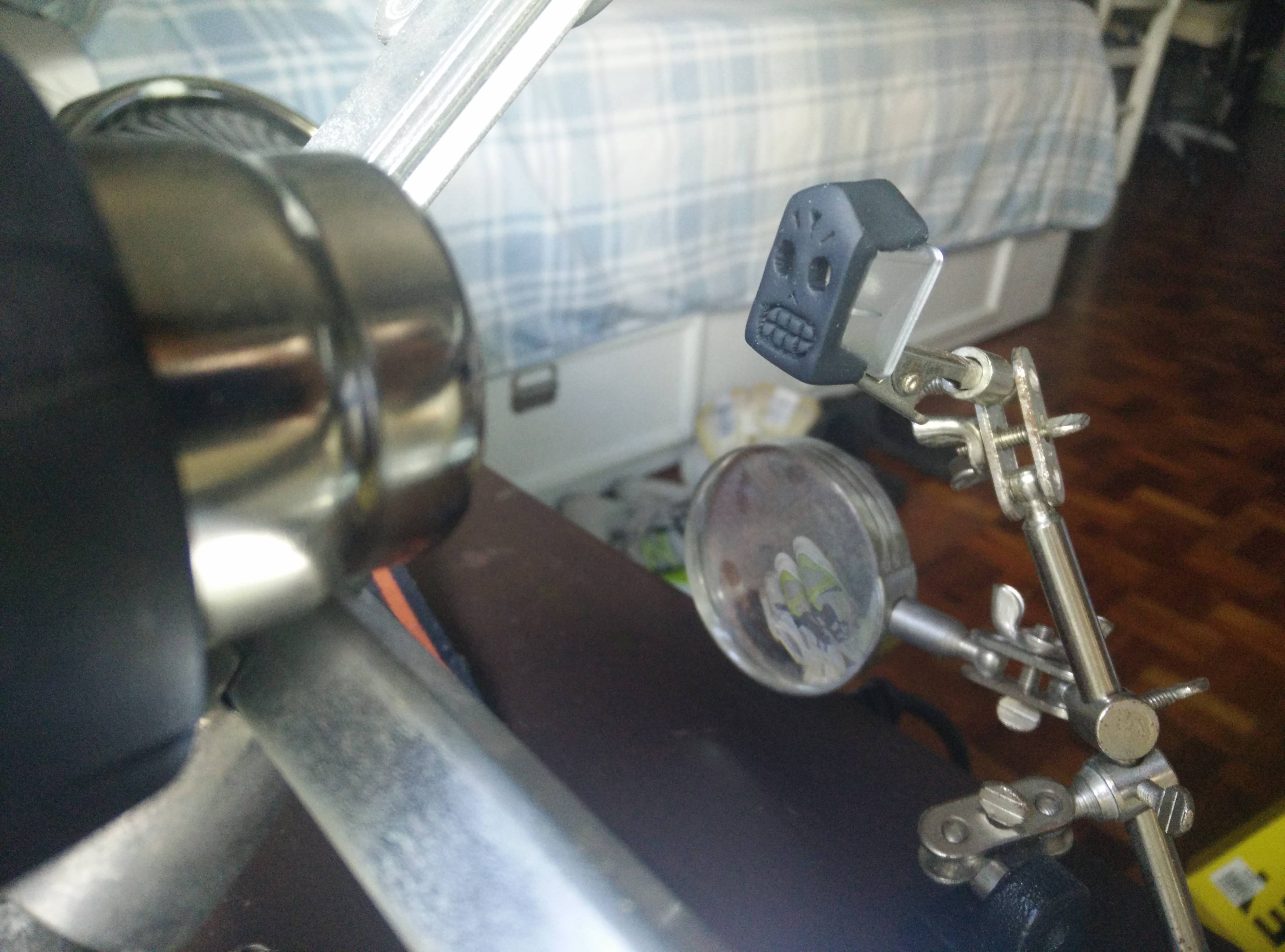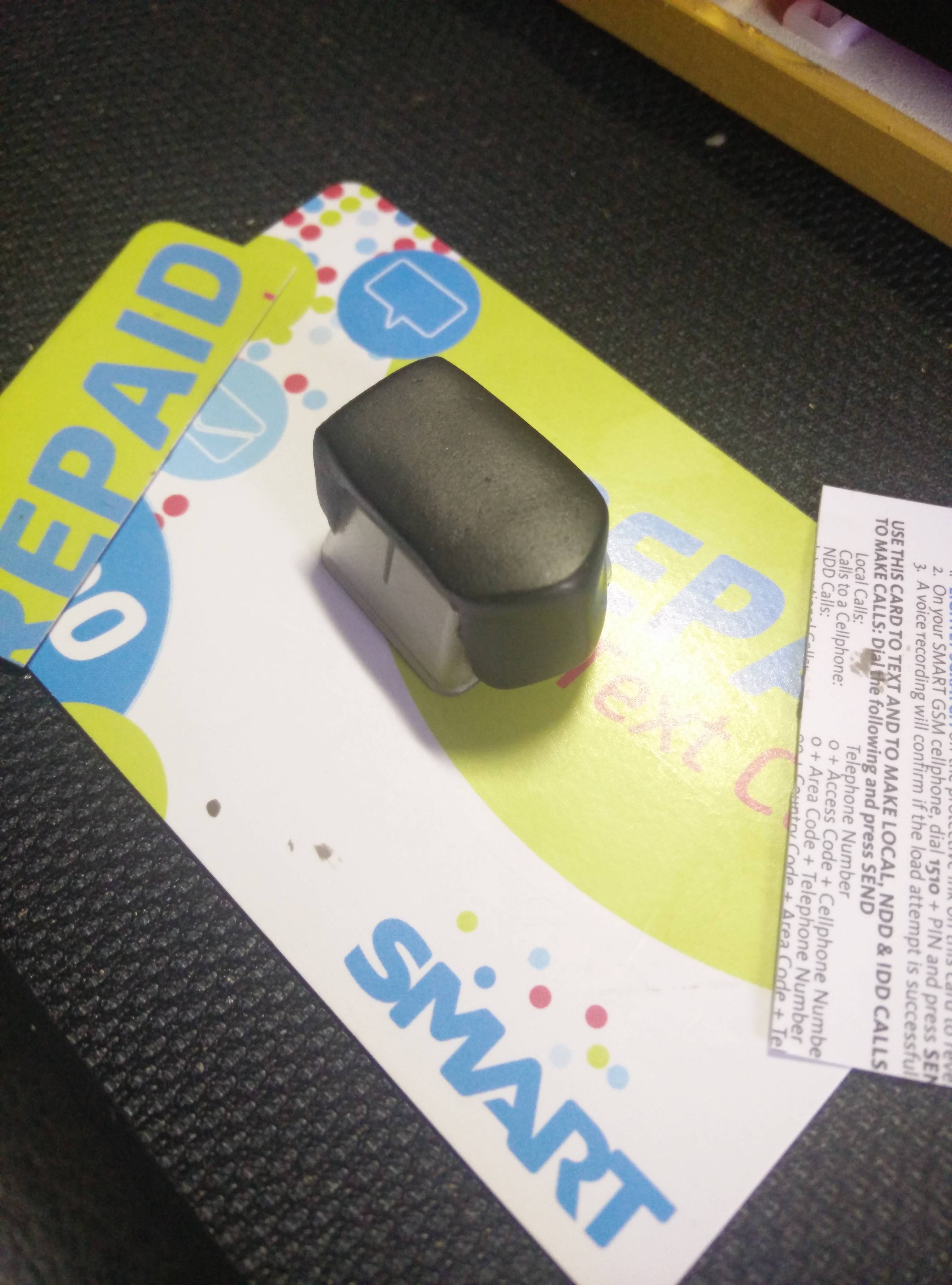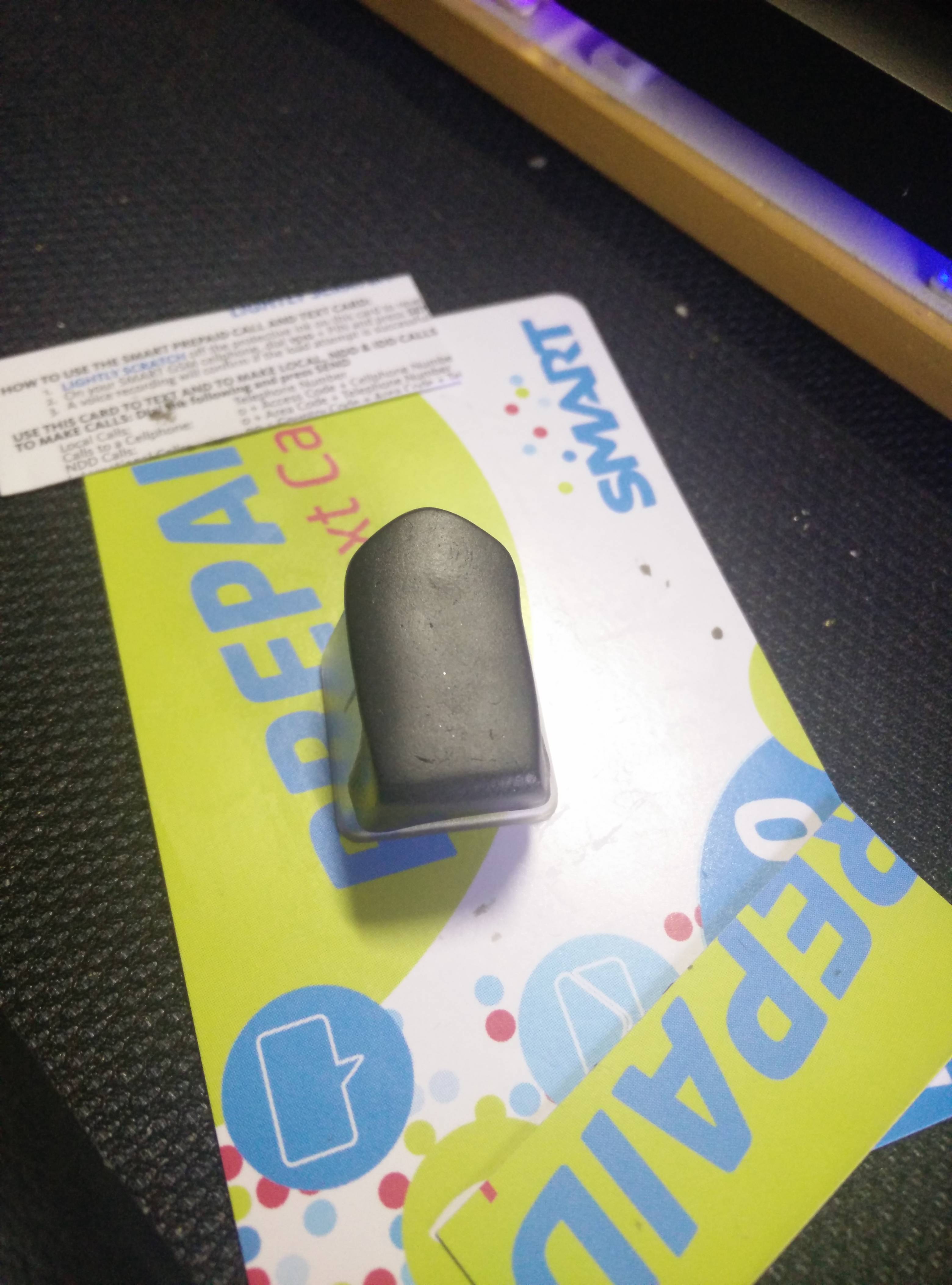 When working with Sculpey modelling clay, you quickly realize that this thing attracts more fingerprints than an iPad after a buffalo wing dinner. I’m not an artist and I don’t have specialty tools for crafting, so all I did was cut up a used phone card so I could handle and shape the clay without leaving my identity all over it. (Fig. 1–3.)