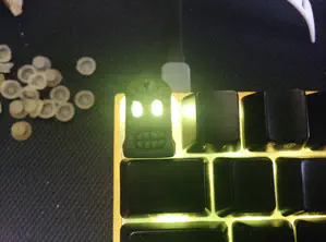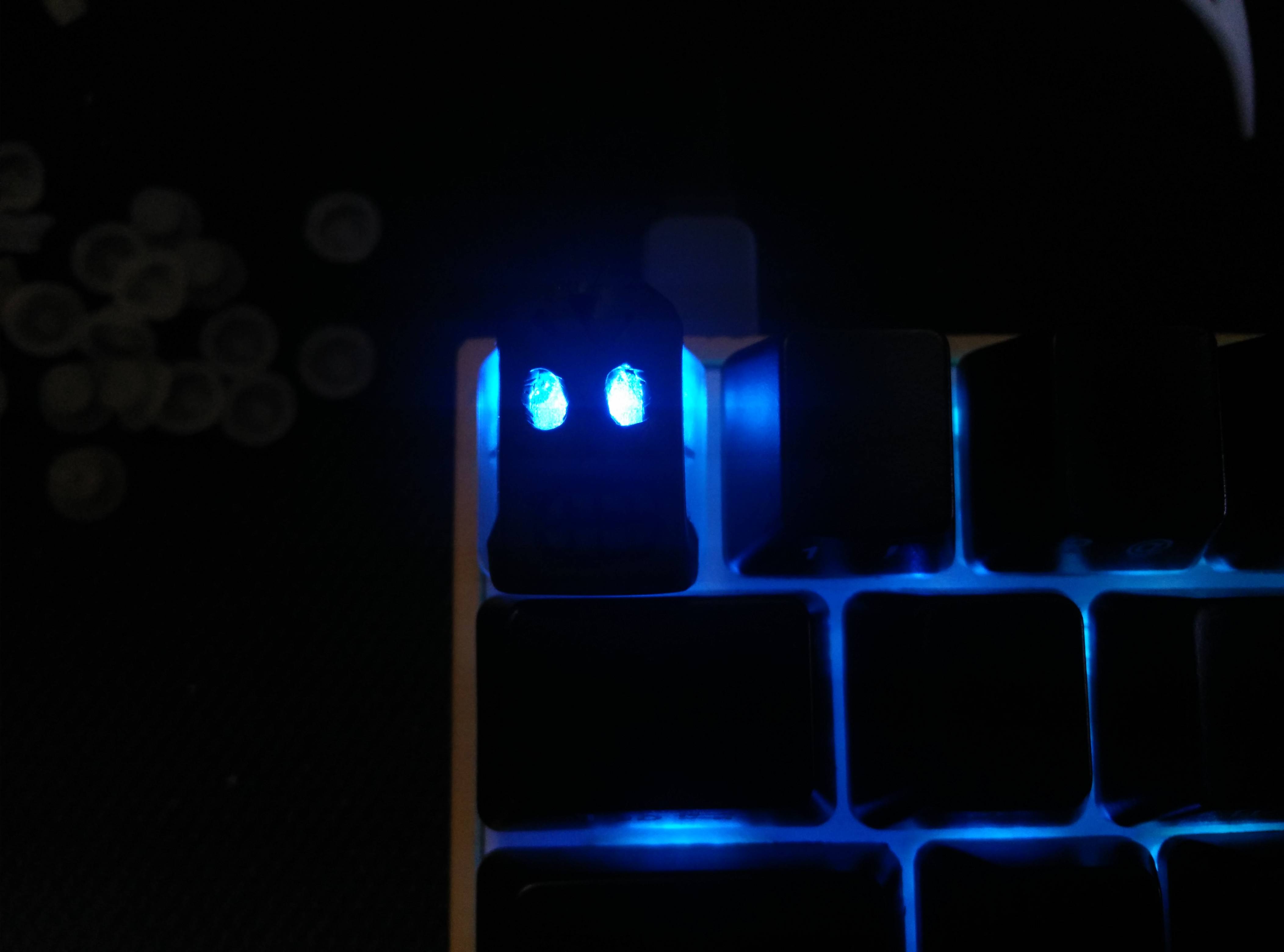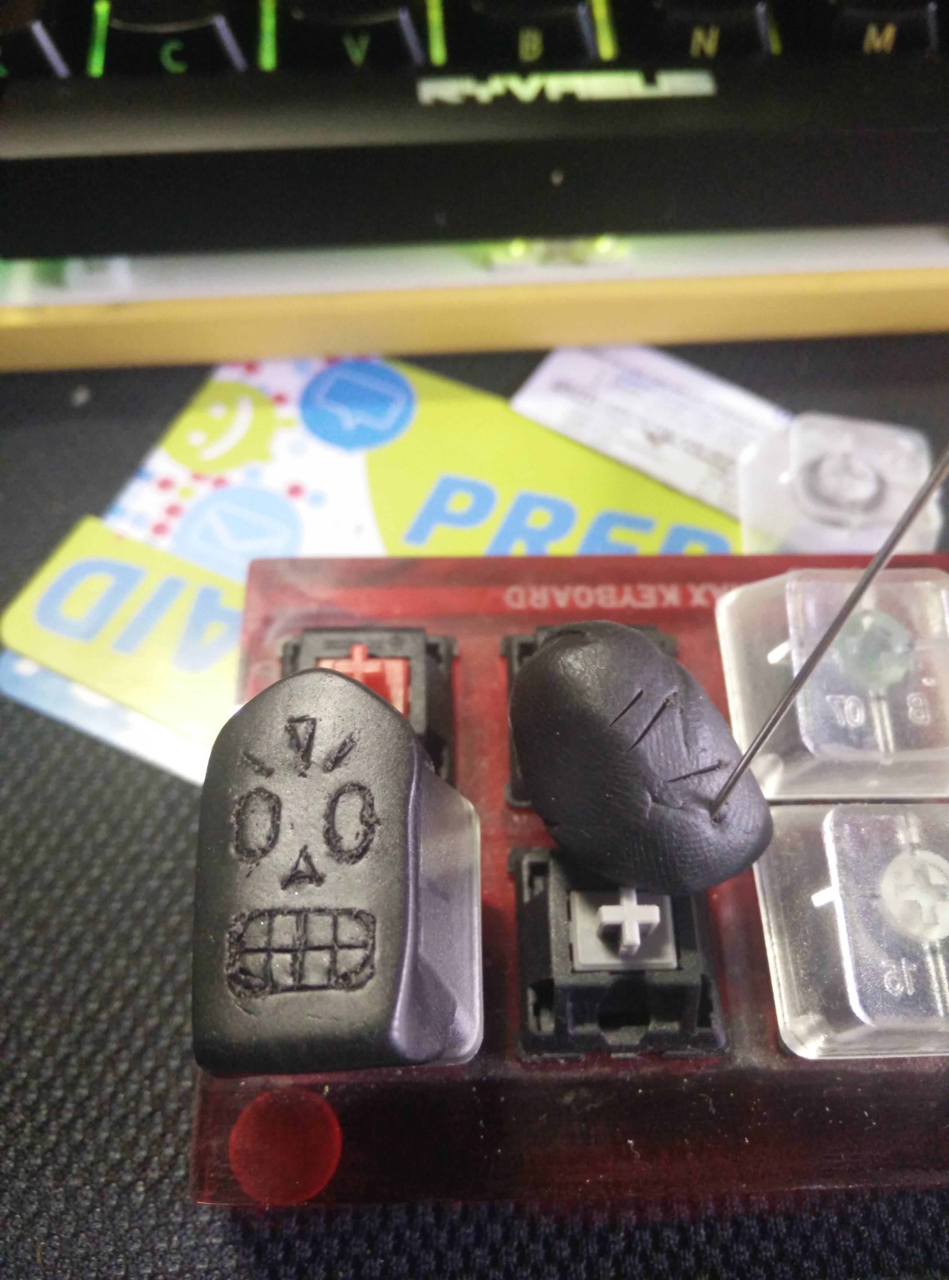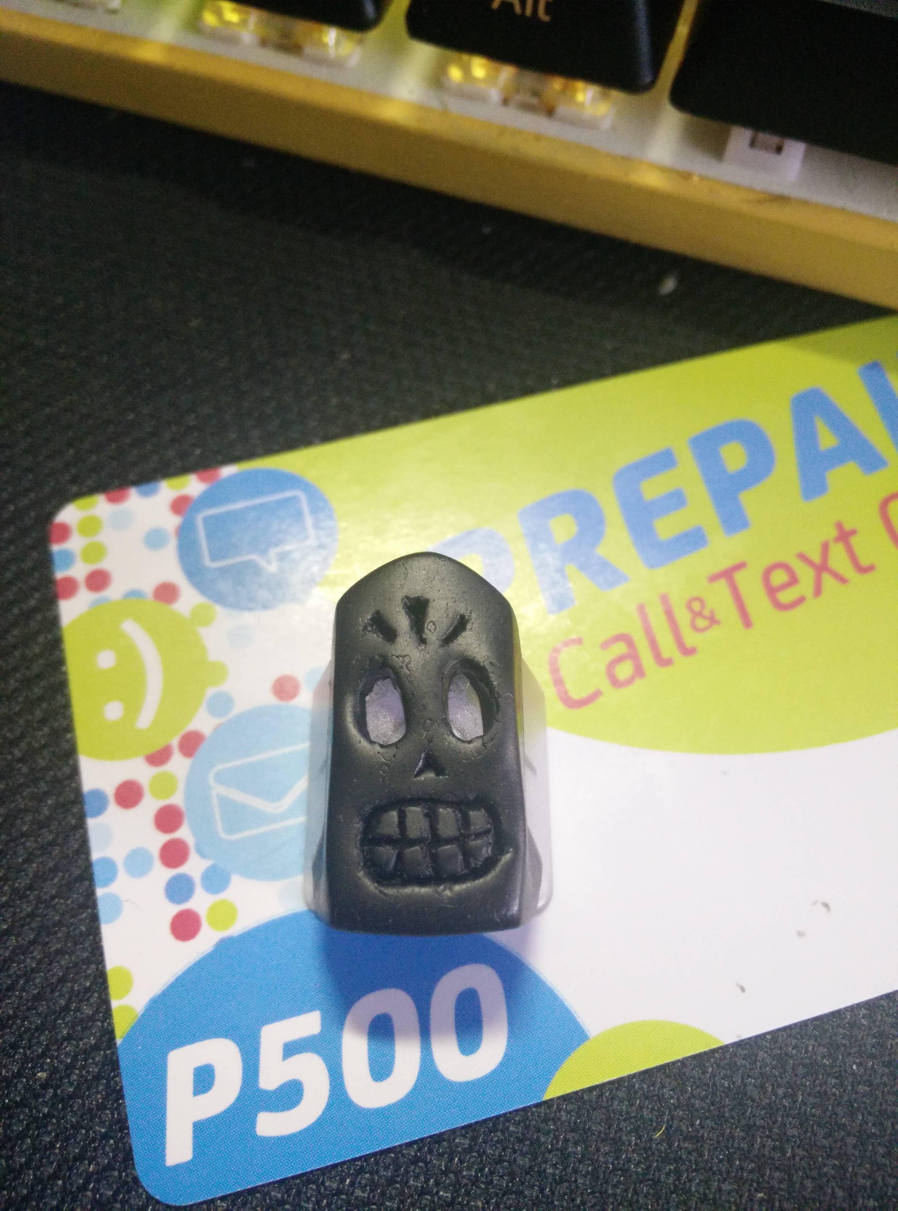 I suggest using a spare keycap as a base to model your shartisan on, so you don’t have to worry about the stem and you can fairly easily determine the size constraints you have to work with. In my case, I had a spare keycap from Max Keyboard’s switch/keycap tester. It happens to be transparent, so there’s a nice backlighting effect. (Fig. 8 & 9.)